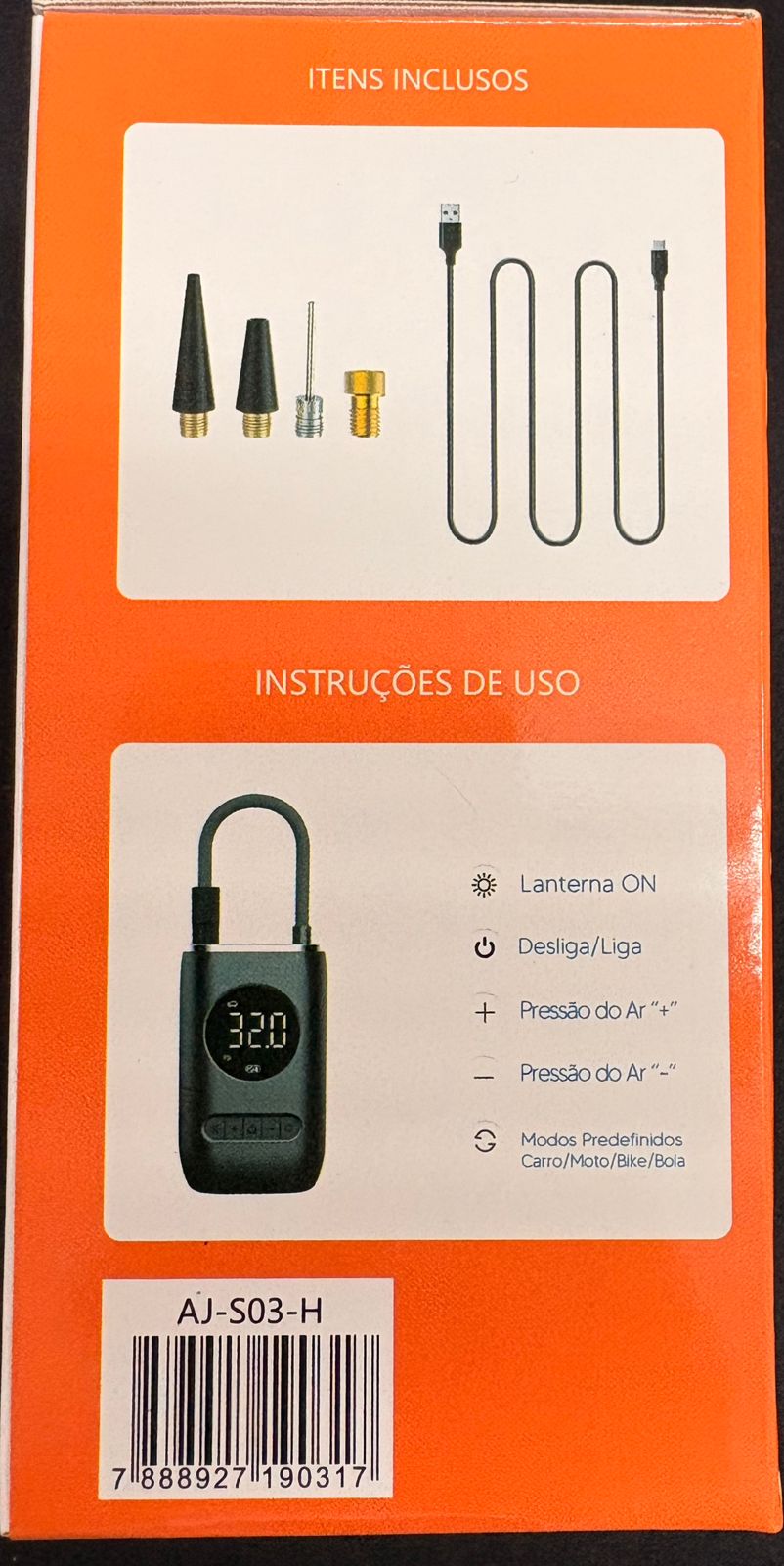 O Mini Compressor de Ar AJ-S03-H é a solução prática e eficiente para inflar pneus de carros, motos, bicicletas, bolas esportivas e muito mais. Compacto, leve e com bateria recarregável de 2000mAh, ele é ideal para emergências e uso diário, oferecendo pressão máxima de 150 PSI e display digital para controle preciso.